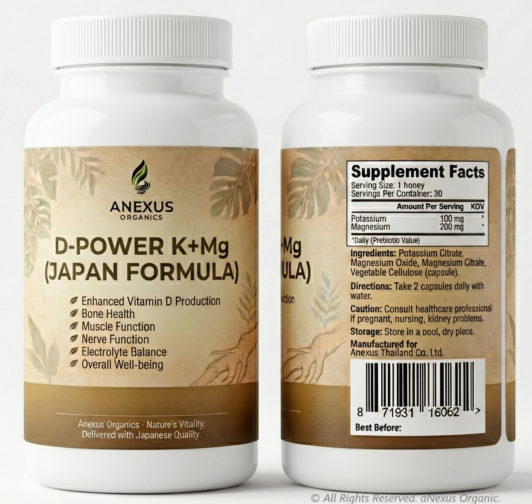 Vitamin D is crucial for health, but it cannot work alone. Anexus Organics D-Power is a specialized Japanese formula designed to provide the essential co-factors—Potassium and Magnesium—that your body needs to effectively utilize Vitamin D.