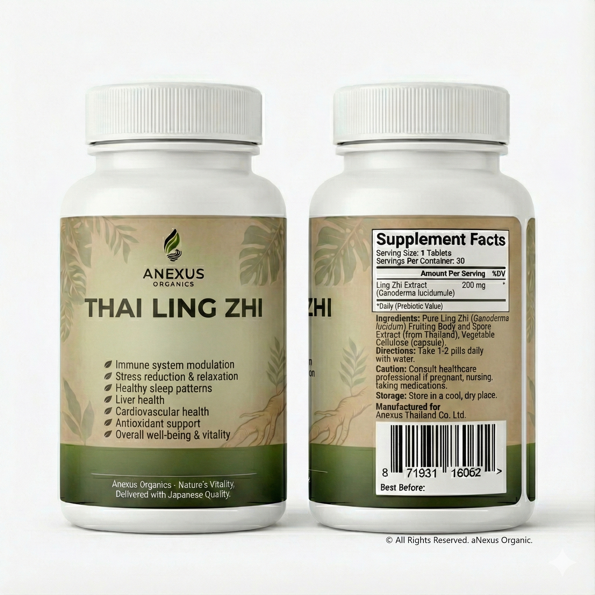 Ling Zhi, or Reishi (Ganoderma lucidum), has been revered in Eastern wellness traditions for centuries as a premier adaptogen. We source premium fruiting bodies cultivated in the ideal climate of Thailand.